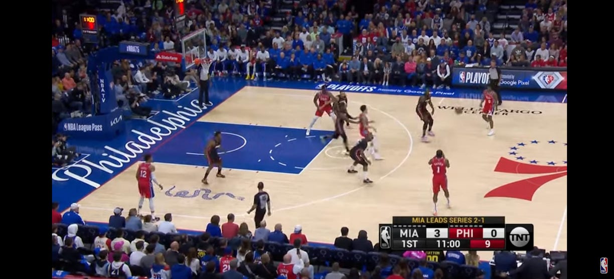 Miami has decided that they will switch on Embiid’s ball screens, front the post, and send help from the low man to dissuade the entry pass. In Games 3 and 4, the Sixers have done an excellent job of maneuvering off the ball to make that impossible.