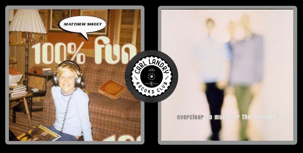 Albums discussed are Matthew Sweet’s ‘100% Fun’ (9:39) and Everclear’s ’So Much For The Afterglow’ (36:51).
