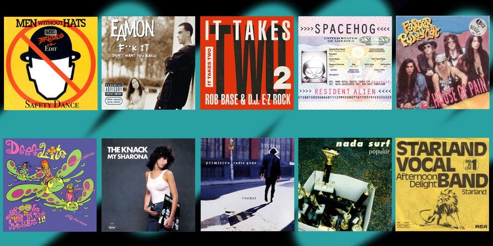 We take a break from the album format to talk about what a one-hit-wonder is, and some of our favorites from artists: Eamon, Men Without Hats, The Knack, Rob Base & DJ EZ rock, Primitive Radio Gods, Deee Lite, Spacehog, Starland Vocal Band, Faster Pussycat, and Nada Surf.