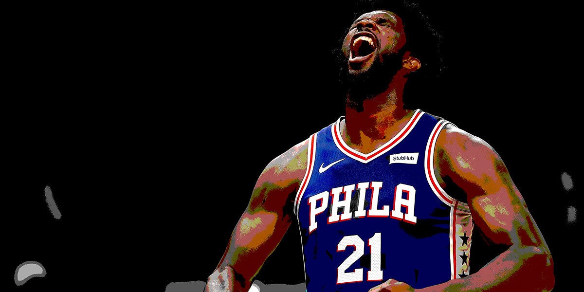 And as with the instantly iconic Jimmy Butler wing 20-footer from last year, the flashbulb moment from this was again a game-winning jumper: This time belonging to one Joel "Do a 180?" Embiid. And turns out Jeopardy! contestant Paul Trifeltti might've been more of a prophet than we realized last month, since that's essentially what JoJo did to secure this one, with the game tied and 15 seconds to go. He drew All-Star teammate Giannis Antetokounmpo on defense, backed him patiently from the high-post to the mid-post, spun around and fired that Dirk-like fadeaway he's pulled out sporadically since his rookie season. Swish. Shimmy. Pandemonium. Ballgame.