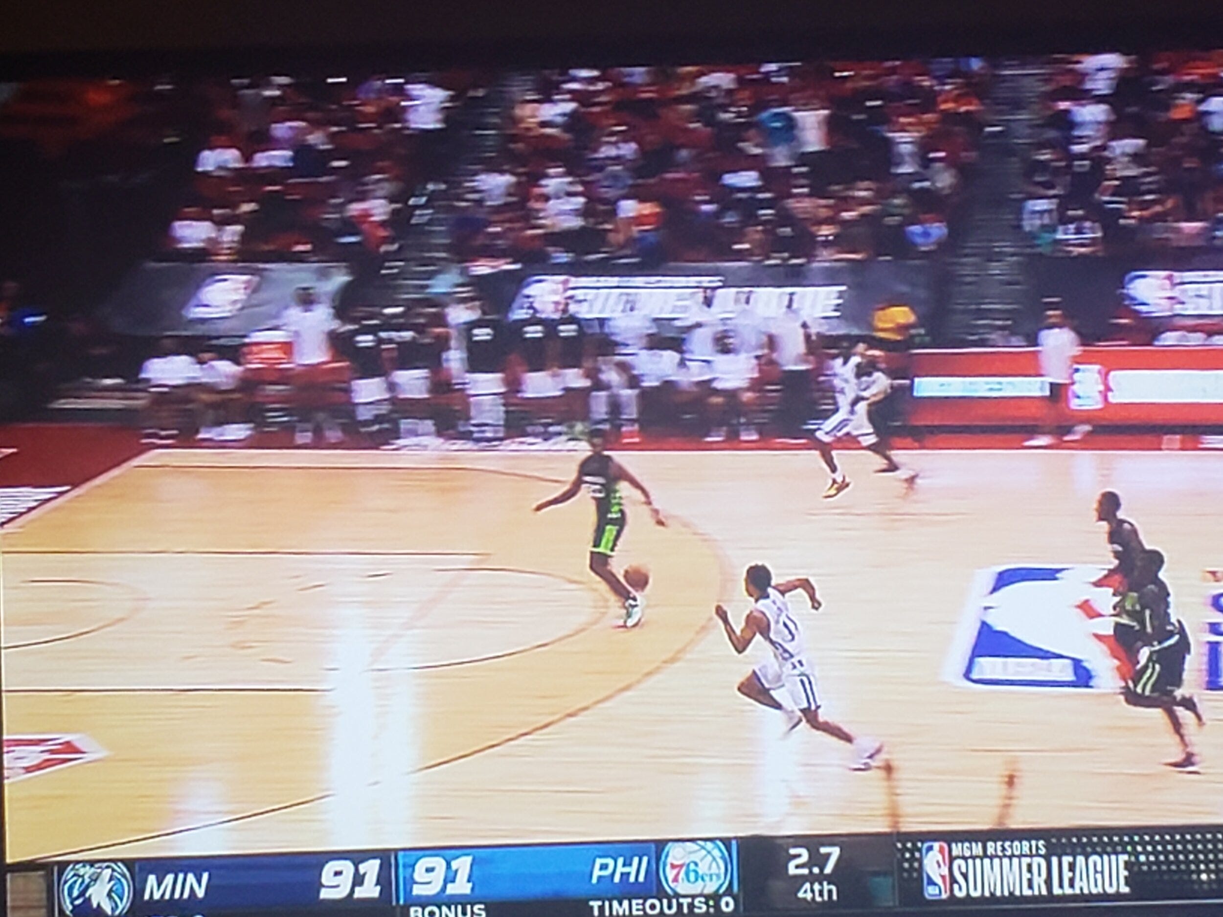 Due to a few hours of interstate travel and a White Lotus denouement that had to take precedence last night -- yes, I think the final shots of Quinn's airport escape were a fantasy sequence, no, I don't think HBO should bring the show back next year -- I didn't get to see the Too Good For Summer League Sixers' own season finale against the Minnesota Timberwolves until Monday morning. By that point, I figured if something really that notable happened I probably would've heard about it already, and with the TGFSLS' championship hopes already dashed, I wasn't sure what really could happen anyway. I power-watched it an hour before work, figuring I'd have already long forgotten about it by lunchtime.