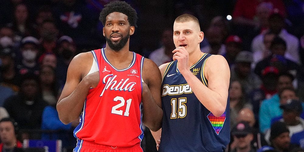 Not that Jokic wasn't still good -- 22-13-8-2-2 on efficient shooting is nothing to brush off, particularly in a W -- but you'd figure that if the Nuggets were gonna steal this one in Philly, it'd be because he played the Big Bad Indefatigable MVP propelling his undermanned team to victory, while Embiid mostly shrank in the spotlight. It certainly wasn't that: Embiid's 34 points felt enormous, his defense was mostly superlative, and despite his five turnovers (matched by Jokic), he made some excellent reads with the ball on the move. And it wasn't his new running mate letting him down either: Harden had 24-9-11 on good efficiency, controlling the game the way a point guard should, largely taking the game over in the third, and getting to the line while remaining dangerous even when not getting the benefit of the whistle. Maxey showed up with 19 points, Matisse was everywhere on defense, Tobias hit a shot or two. All of that plus a dynamite first quarter and a good-not-great Jokic performance should've added up to this being an easy, MVP-cinching win for Joel and the Sixers.