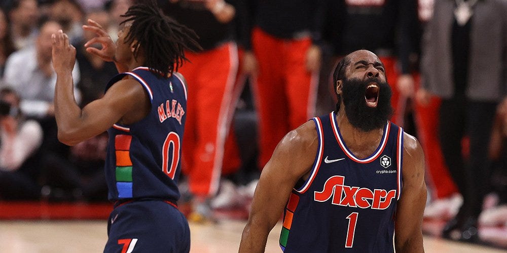 Now? It's just basketball. The Sixers get the luxury, for arguably the first time since the Uncut Gems team a decade ago, of a free run at a playoff series when they've already been counted out. No more worrying about What It All Means if they don't come through, no legacies on the line (unless Harden's next contract counts), no contending with the ghosts of Kawhi Leonard and Terry Rozier and Kevin Huerter in addition to the team they're actually playing. The two guys leading this team now shouldn't give a shit about that stuff without Joel; one got here last year and only played spot minutes in the playoffs and the other showed up a few months ago and left a situation that makes ours look like the feel-good Grizzlies right now. Tobias has the institutional memory, of course, but even he's seemed like a totally new player the past month-plus, unshackled from the expectations of his contract and suddenly more unflappable than anyone. Together, they'll play fast and loose and without fear, because the worst thing that could happen at this point is just that they lose four times and get to try again for real next year. Compared to the weight they've been playing with, it should be pretty liberating.