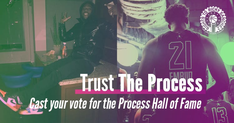 Voting closes tonight at midnight for the first ever class of the Process Hall of Fame. Remember, there are three categories, and only one from each category will make. The categories are "Person," "Sixers Moment," and the ever self-congratulatory "Rights To Ricky Sanchez Moment." Spike and Mike will reveal their ballots on tomorrow's podcast and Unterberger revealed his here.