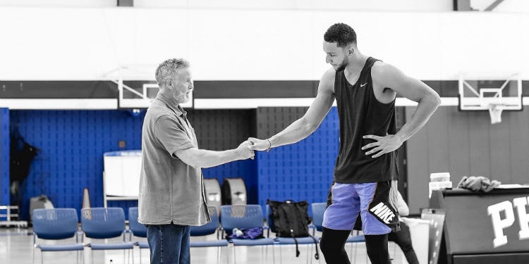 Here's a photo of Elton taking advantage of Vlade Divac years before Sam Hinkie did. Here's what Philly Voice's Kyle Neubeck had to say about the Elton Brand hire. Here's what The Ringer had to say. Speaking of the Ringer, Mike was on John Gonzalez's podcast to talk about the GM search just hours before it concluded. It's already outdated but listen to it anyway because they do talk about Markelle Fultz 150,000 times.