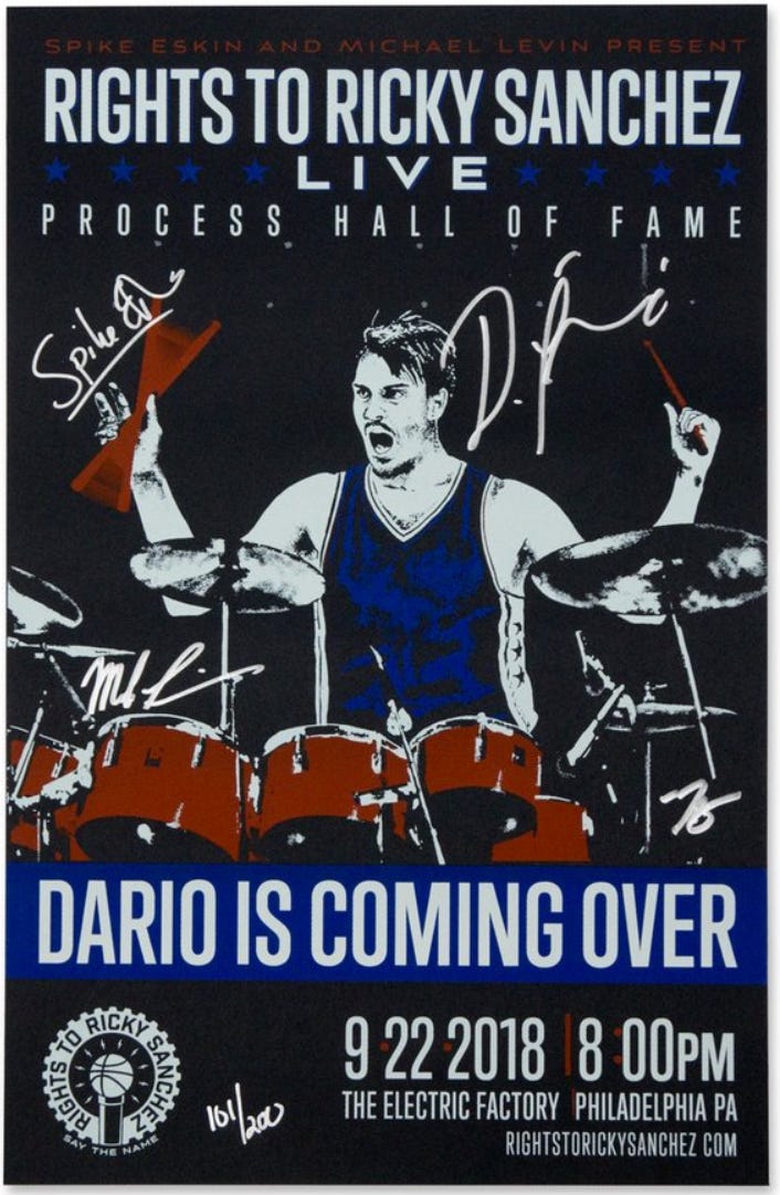 Since the Live Ricky was sort of like a concert, we wanted to do a limited edition concert poster. We had 200 of these printed, and then signed by Dario, Spike, Mike and Tanner, who designed the poster. We had about 50 leftover from the show, and now there are about 16 left for sale. They're $39.99, they're all individually numbered of 200. The autographs are in metallic silver Sharpie and turned out really well. The final bunch of them are for sale right here, and when they're gone, they're gone forever. Why is Dario playing the drums here, anyway?