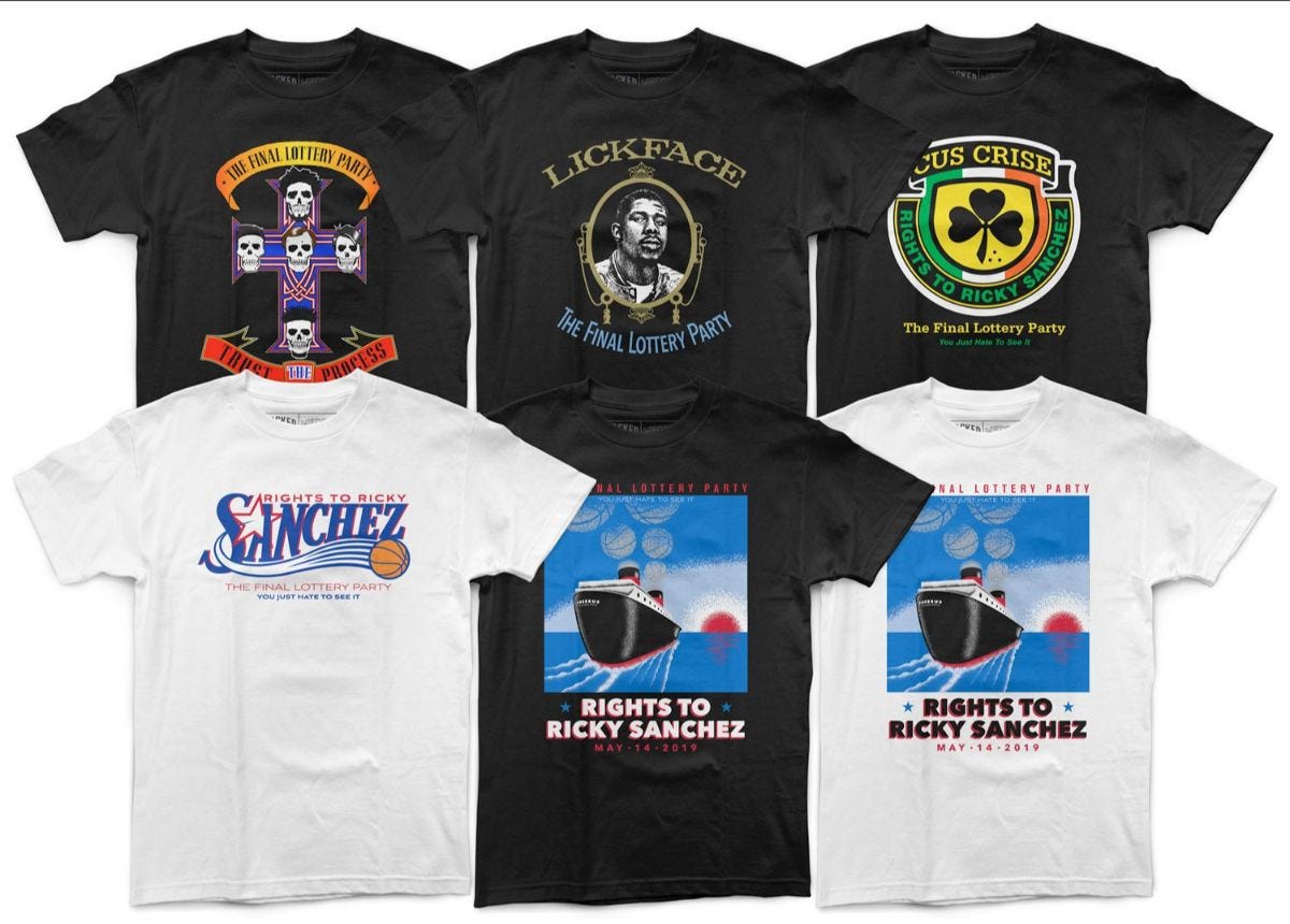 All of the Lottery Party shirts will be high-quality triblend shirts, and all of the profits go to our charities, the Providence Animal Center and Coded By Kids. They're all $19.99 and include the first Ricky shirsey. Get them all here.