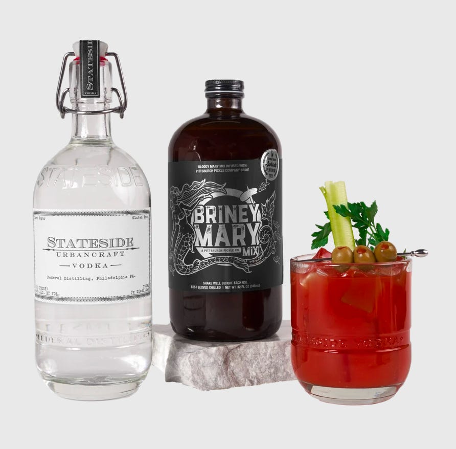 The Stateside Vodka Briney Mary cocktail kit is ON SALE. $49.99 gets you a hefty bottle of Stateside, 32 oz. of Briney Mary mix, and TWO Stateside Rocks glasses. Order here at the link, available for order in 44 states. Or some Stateside Black Label Bourbon. You better be at least 21, and you better be enjoying responsibly. You can still pick it up curbside in Philly too.