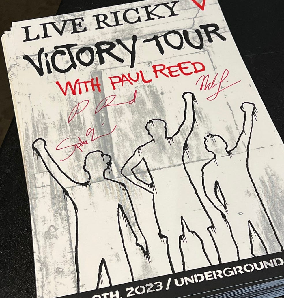 The autographed Live Ricky V 'Victory Tour' poster, designed by our own Tanner Lowry. 20 left!
