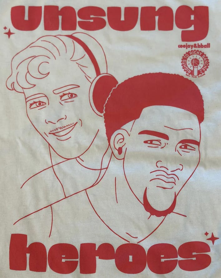 The 'Unsung Heroes' tee, designed by our own Abbie Huertas. It features BBall and CJ, the first and last time they'll ever be on a shirt together. About 50 of these left. Hit the link to get one.