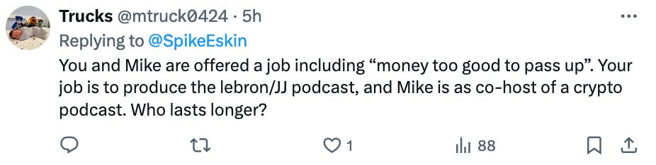 I’m almost certain Mike would agree that the answer is quite clearly me. First of all, I know how to produce a podcast, as doing that stuff has been my career for a long time. Mike doesn’t know anything about crypto and as he’s often said, he doesn’t even like hosting a podcast.