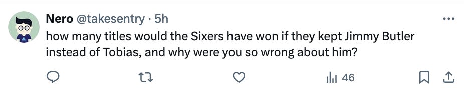 I’ve said this over and over again, and I’m not sure if you are too dense to listen or not smart enough to understand, but it would have never worked here. The Sixers did not have a strong enough infrastructure to withstand how Jimmy was, which is exactly why he was gone. The Heat did, and good for them! The Sixers never have. It would have ended badly, which is basically how it’s ended for Butler everywhere.