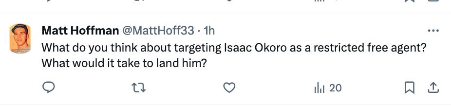 I don’t think he’s a great fit, but also I’d never target an RFA because it only makes sense for Cleveland to match and then wait until they can trade him.