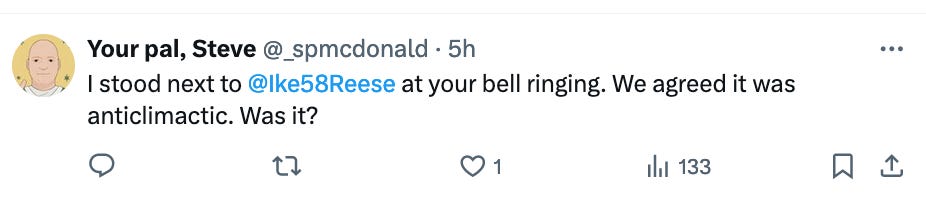 Not for me or for Mike! I’m sure it was anticlimactic in the crowd. Why would it be anything but? It’s two guys fake ringing a bell. I’m sure it sucked. But for us, it was awesome.