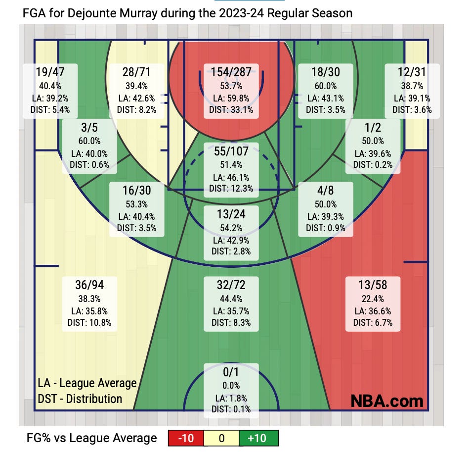 (Murray’s horrific 53.7% conversion rate at the rim also shouldn’t go unnoticed in evaluating his shot chart).