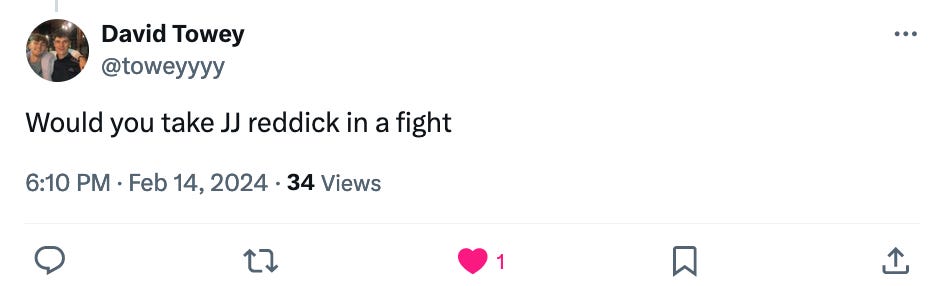 I can’t stand listening to or watching JJ Redick, I’m incredibly disappointed he’s been upped as an analyst for NBA broadcasts, but he’d kick the shit out of me if had to guess.
