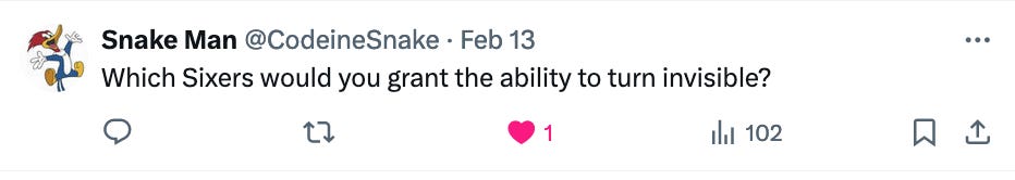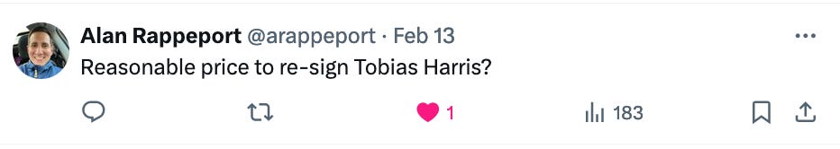 Since it’s the All-Star break, Joel Embiid hasn’t played in weeks, Nick Batum is in witness-protection, AU has shifted his entire existence to BBall Paul and I don’t want to use any material I’ll have to use in tonight’s podcast, here’s some AMA from X.