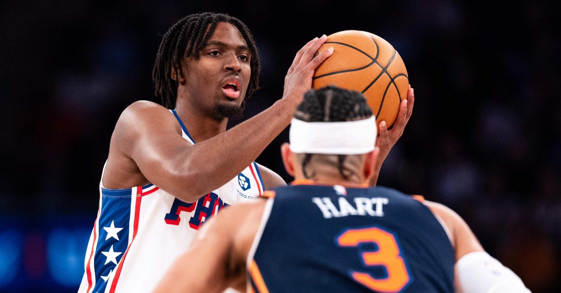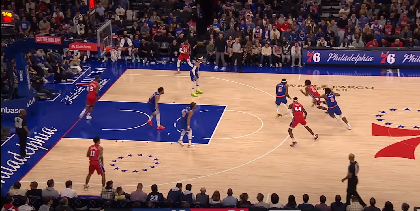 The Knicks are a good 3-point shooting team overall, but there are two hesitant shooters that get major minutes on the wing: Hart and Precious Achiuwa. In their hideous win over the Knicks last month, a major factor in the Sixers’ ability to hold New York to just 73 points was their plan to help off of Hart and Achiuwa, as highlighted by the Ricky’s Dan Olinger.