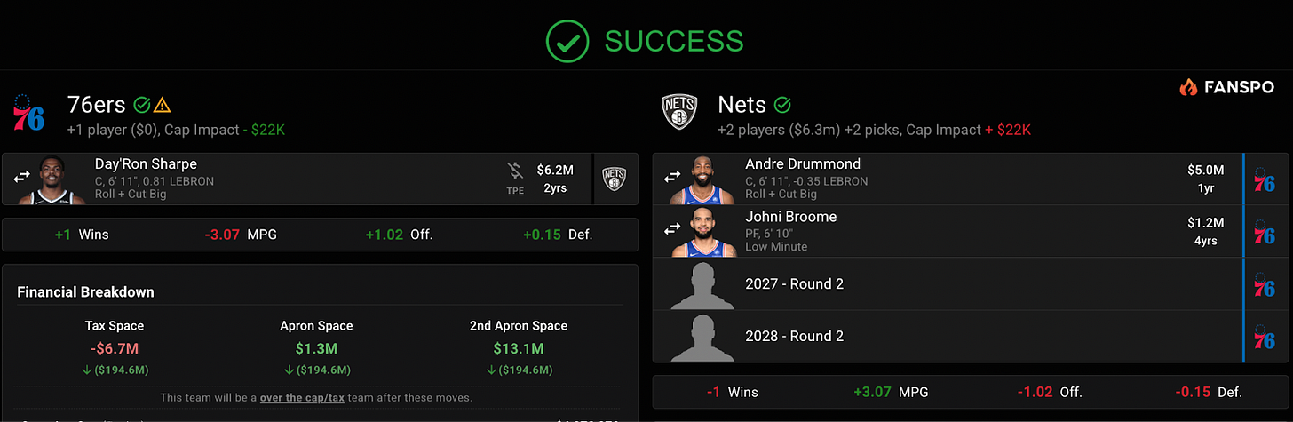 The Sixers would get a player whose offense is still considerably more impactful than George’s, and whose passing ability would free up tons of off-ball actions for Maxey – and of course, they would open up $30+ million in cap space for the off-season. I kind of like it!