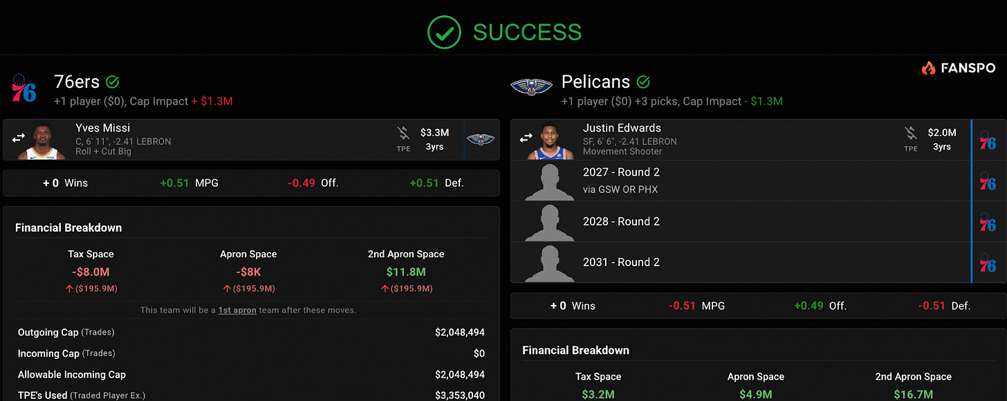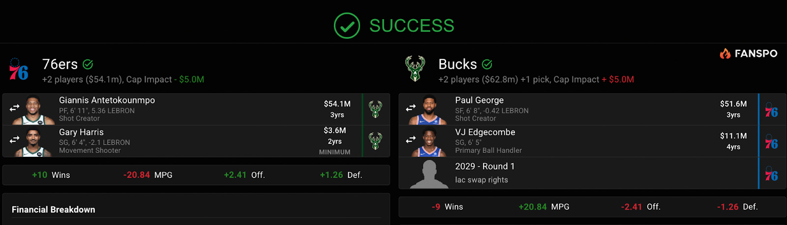 I can’t help but wonder if we are all thinking with a bit too much sentimentality and ignoring A) how good Giannis actually is, and B) just how much sense this makes for the Sixers. This trade immediately makes the Sixers legitimate title contenders and also cleans up the “two timelines” problem that figures to be a point of tension for them for years to come. The Sixers suddenly go from a middling team plagued by the question of how they can try to win with Embiid and PG while not ruining the future for Edgecombe’s prime, to a team that can immediately win-now and has an obvious logical end-point for when they should pivot to a rebuild; they can go for broke for the next few years, and then trade Maxey and tank whenever Giannis and Embiid age out of relevance.
