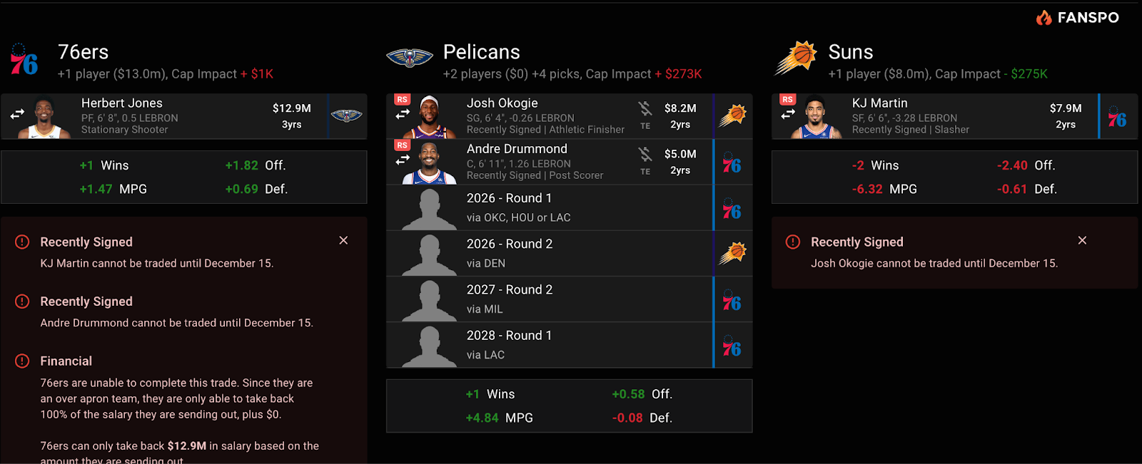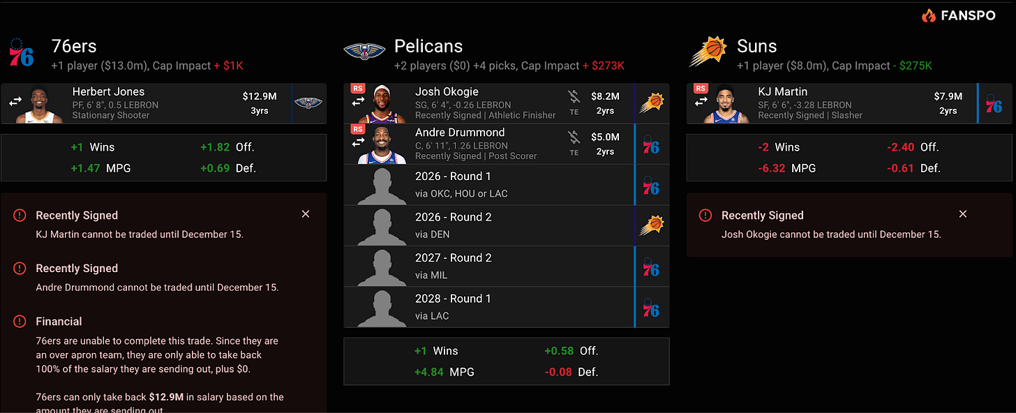 I’ve touched on Jones before as a trade target, but I really believe him to be the perfect fit. He’s one of the five best wing defenders in the league, he’s only 26, and he’s signed to a reasonable contract through 2027. Unless the Sixers plan on truly bottoming out this year, it makes total sense to push their chips in for him. I would happily give up something along the lines of this package in order to bring Herb to Philly.